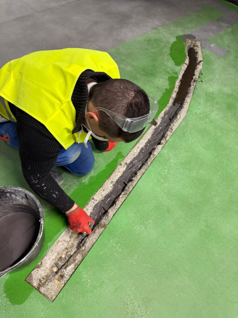A kivitelezés során összesen mintegy 140 folyóméternyi repedés javítása történt meg egy körülbelül 30 cm vastag, teljes keresztmetszetében átrepedt vasbeton födémszerkezeten, a mélygarázs három külön szintjén. Az ilyen jellegű károsodások esetében különösen fontos, hogy a javítás ne csupán a látható felületet kezelje, hanem a szerkezet belső rétegeiben is hatékony és tartós megoldást biztosítson.